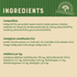 turkey (40.7%), pea protein, tapioca starch, tomato pomace, minerals, sunflower oil, linseed oil, tomato powder, fish oil, chicory extract (0.067%), cranberry extract (0.013%), yucca extract (0.005%).